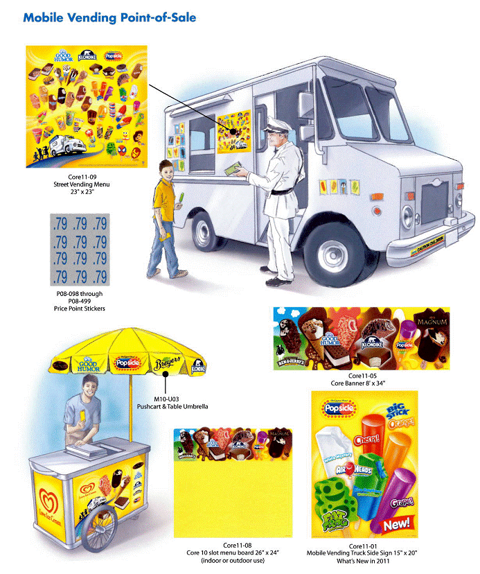 Please give us advance notice and we will put together a nice customized selection for your next ice cream party. Stickers are always free but we can for additional service charge brand/dress the truck or cart however you like.